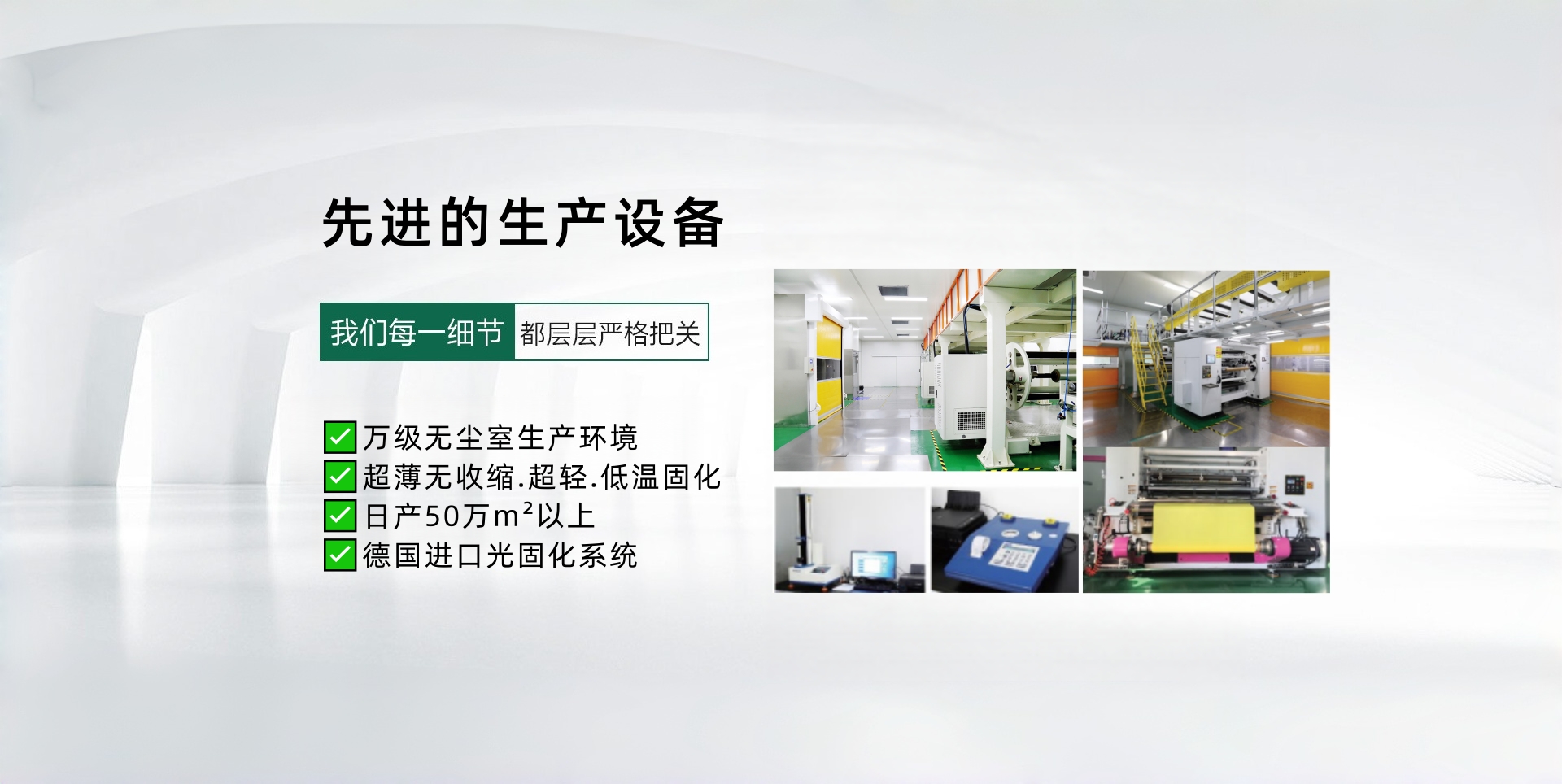 苏州鸿科新材料科技有限公司2019年12月成立于苏州太仓市,专业生产高品质光固化离型膜。采用德国最新光固化设备,产品应用于模切及胶带、医疗、包装、建材和卫材等市场。以生产环保和可持续的产品为使命,为实现美好生活,减轻环境负担,可持续发展为企业终身文化价值。